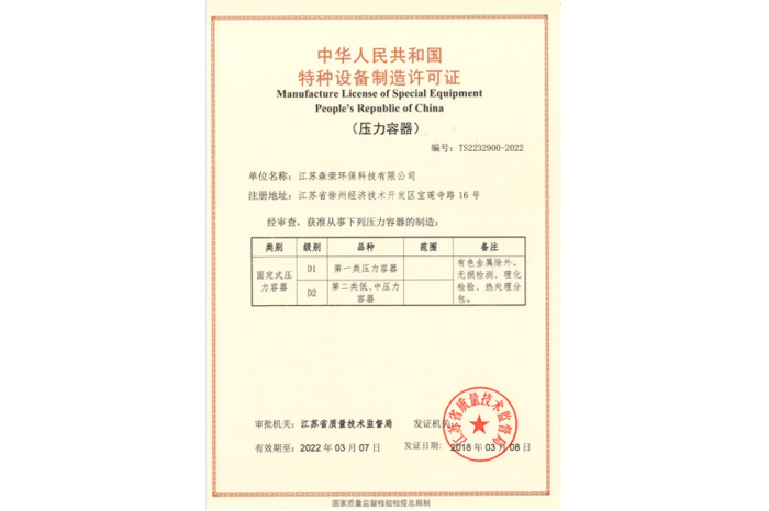 特種設(shè)備制造許可證