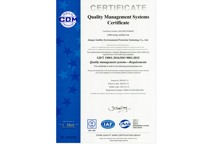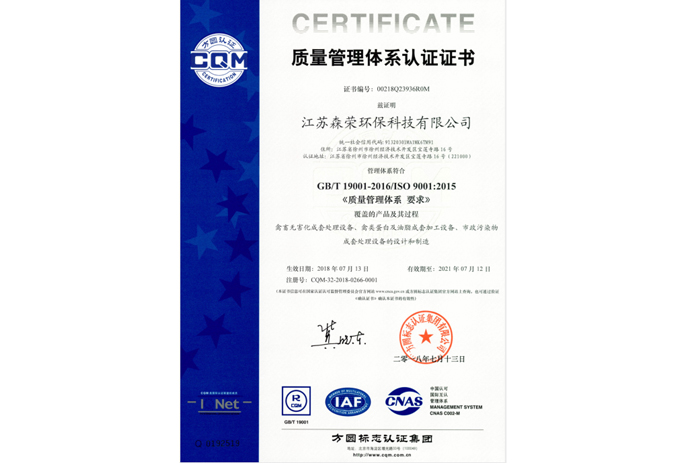 質(zhì)量管理體系認(rèn)證證書